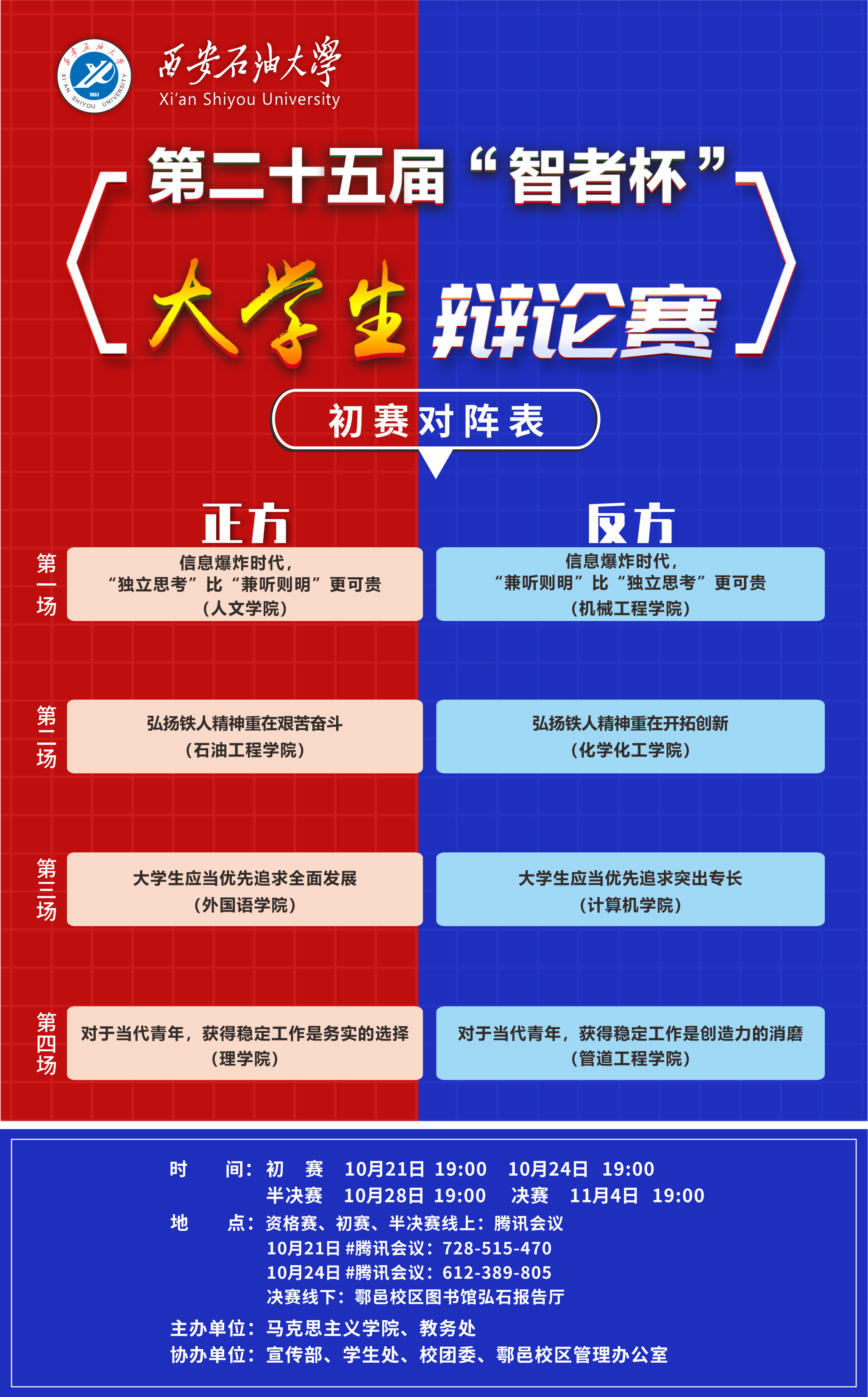 第二十五届“智者杯”大学生辩论赛初赛对阵表已出炉!!